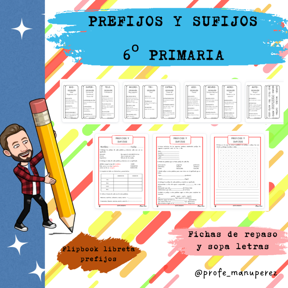 - Fichas de repaso y sopa de letras de prefijos y sufijos.